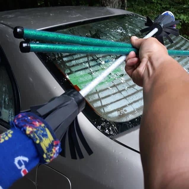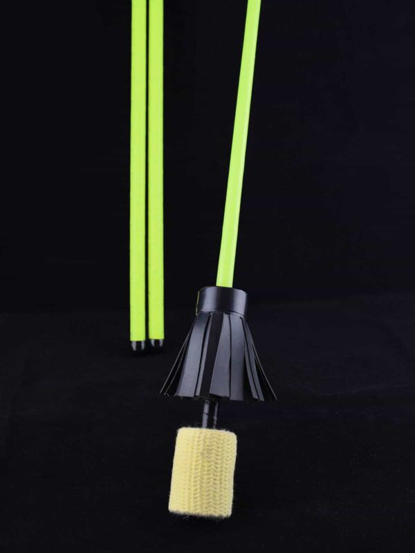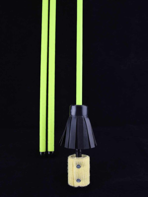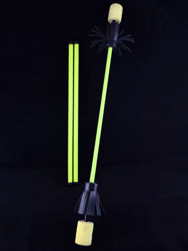 ▹ The stiff fiberglass shaft is strong and highly resistant to shocks, and have been covered with super tacky silicone, which provides ultimate control for all your crazy tricks. The handsticks are made of wood and covered with silicone.