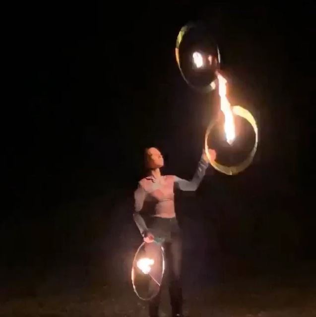 These hoops are exactly what I wanted for a set of iso juggling hoops. Perfect size and they burn wonderfully. LMFprops always has great customer service, I didn’t even notice I was overcharged for shipping but they sent me a refund no questions asked. Love love love these hoops and love supporting a Canadian company (not the best picture of the hoops but all I got for an action shot !)