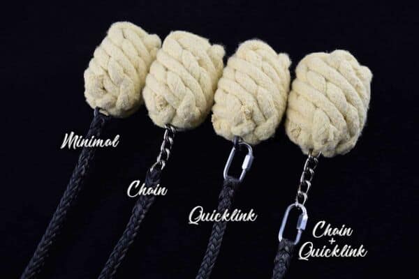 Your knobs can be attached directly to the leash or with a swivel to allow them to spin freely.